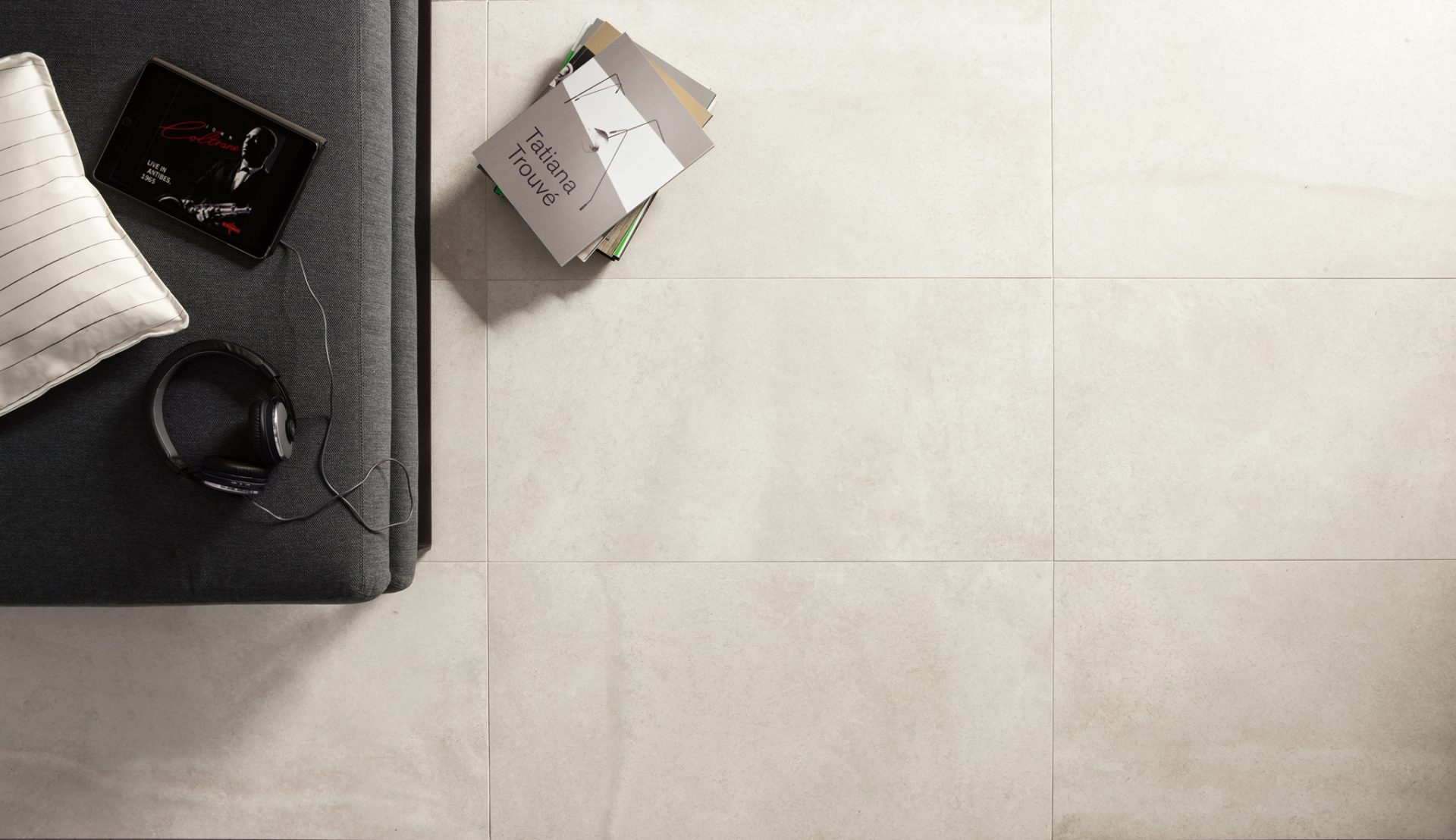 Piemme Bits and Pieces Powder Bone - Grey stone effect porcelain wall and floor tiles with a Natural finish - 1200 x 1200 mm