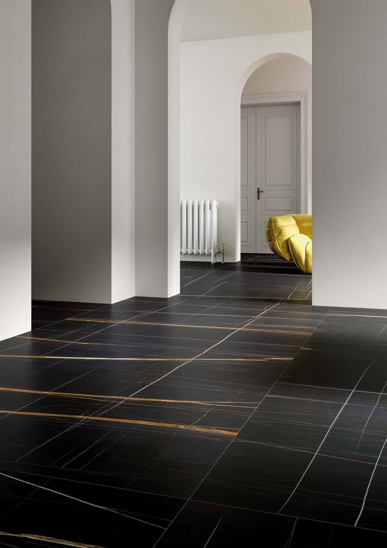 Ariostea Ultra Marmi Sahara Noir - Black marble effect porcelain wall and floor tiles with a Honed finish - 1200 x 1200 mm